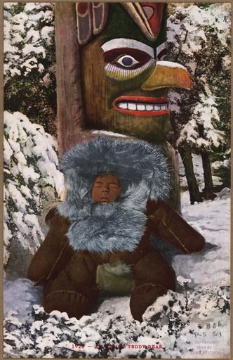 | Keywords: Color post card. "1923-An Eskimo Teddy Bear." (Eskimo baby sleeping at foot of a totem pole. - NARA - 297749.jpg Scope and content General notes 297749 Local identifier Wellcome Henry S Henry Solomon Sir 1853-1936 NARA's Pacific Alaska Region Anchorage NRIAA 654 West Third Avenue Anchorage AK 99501-2145 Record group Collection WME Sir Henry Wellcome Collection 1856 - 1936 Record group ARC 1208 Photographs of the Inhabitants of Metlakatla British Columbia and Metlakatla Alaska compiled ca 1856 - 1936 Series ARC 297169 File unit File unit ARC Variant control numbers NAIL Control Number NRIA-WME-PHOTOS-P806<br /> Other Identifier Box 278 Other versions <gallery> File Color_post_card _ 1923-An_Eskimo_Teddy_Bear _ Eskimo_baby_sleeping_at_foot_of_a_totem_pole _-_NARA_-_297749 tif tif File Color_post_card _ 1923-An_Eskimo_Teddy_Bear _ Eskimo_baby_sleeping_at_foot_of_a_totem_pole _-_NARA_-_297749 jpg jpg </gallery> NARA-cooperation PD-USGov Reindeer clothing Inuit clothing Fur clothing of Inuit people Children with fur Postcards of Alaska Totem poles in Alaska Fur fashion in 1923 |