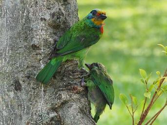 Keywords: colored birds monk quasi woodpecker nestling parent birds curious