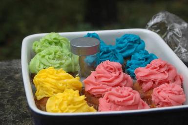 Keywords: colorful cupcakes eat blue pink artificial bake