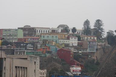 Keywords: valparaiso chile america south latin panorama painting street view port outdoor hill south america brick town urban bright sunny scenery district church area place unesco latin america colors architecture city