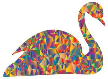 Keywords: colorful prismatic chromatic rainbow triangles triangular low poly polygon abstract geometric art swan bird animal aquatic water swim fly flight