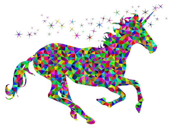 Keywords: colorful prismatic chromatic rainbow triangles triangular low poly polygon abstract geometric art unicorn horse animal mythical fictional creature legend fantasy