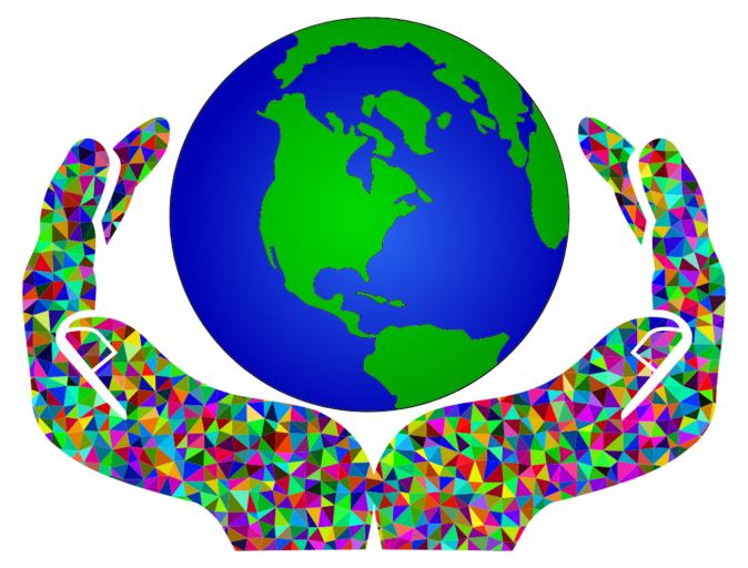 Keywords: colorful prismatic chromatic rainbow triangles triangular low poly polygon abstract geometric art world earth planet globe map geography cartography hands vector svg