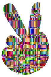 Keywords: colorful prismatic chromatic checkered rainbow abstract geometric art comic cartoon peace hand sign fingers human gesture friendly