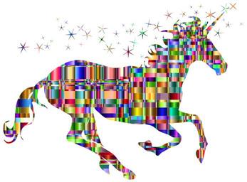 Keywords: colorful prismatic chromatic checkered rainbow abstract geometric art unicorn horse animal mythical fictional creature