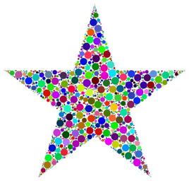 Keywords: colorful prismatic chromatic rainbow circles dots star geometric abstract art vector svg