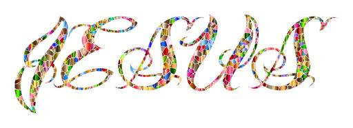 Keywords: colorful prismatic chromatic rainbow tiles tiled voronoi abstract geometric art jesus christ cross crucifix christian catholic religion messiah holy divine god gold shiny typography type text words faith spirituality church belief