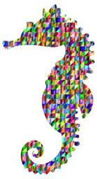 Keywords: colorful prismatic chromatic rainbow triangles low poly polygon abstract geometric art seahorse animal marine wildlife swim ocean water sea