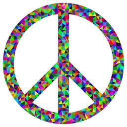 Keywords: colorful prismatic chromatic rainbow triangles triangular low poly polygon abstract geometric art peace sign symbol