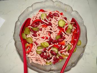 Keywords: colorful sausage salad dinner refrigerator sour paprika cucumbers meal eat healthy