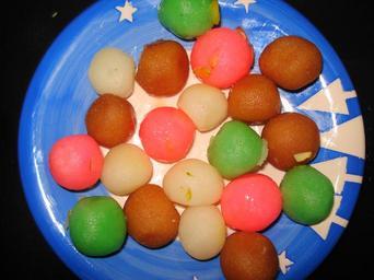 Keywords: Coloured Baby Cham Cham.JPG en These are used in Zarda chawwal own Miansari66 Cuisine of Punjab India made by User Miansari66 Sweet food of Pakistan Chomchom