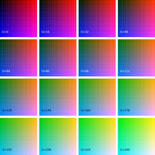 Keywords: Colours.svg RGB Colour table Own 2007-09-01 HandigeHarry thumb RGB Squares with 16 fields 17x17 arrays