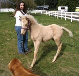 | Keywords: horses palomino colt startle startled surprise surprised The colt here, a two month year old palomino named Bear, is not sure what to make of the dog - he is leaning back and lifting his tail in alarm. He is accompanied by a stablehand holding his lead. CC0 waiver: To the extent possible under law, I waive all copyright and related or neighboring rights to this work. The colt here, a two month year old palomino named Bear, is not sure what to make of the dog - he is leaning back and lifting his tail in alarm. He is accompanied by a stablehand holding his lead. CC0 waiver: To the extent possible under law, I waive all copyright and related or neighboring rights to this work. |