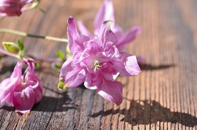 Keywords: columbine flower wild plant blossom bloom pink wood sunlight close