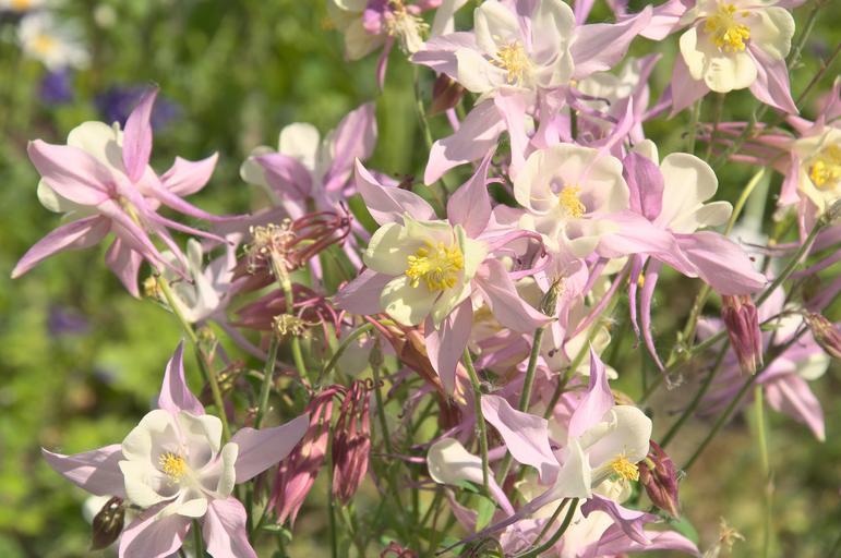 Keywords: columbine flowers garden purple white