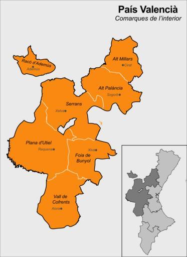 Keywords: Comarques del interior.svg ca Comarques de l'interior del País Valencià own Mutxamel 2008-09-23 Rincón de Ademuz Maps of comarques of the Land of Valencia
