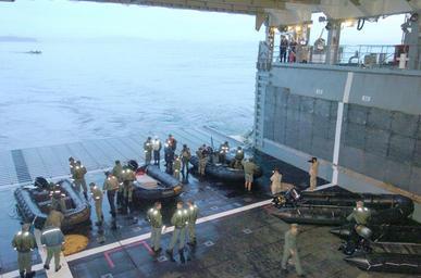| Keywords: Combat rubber raiding craft F-580 (CRRC) DVIDS14848.jpg en PACIFIC OCEAN January 17 2006 - Personnel attached to the US Naval Special Clearance Team One NSCT-1 prepare their combat rubber raiding craft F-580 CRRC before deploying off the stern gate of the USS Comstock LSD 45 and starting their night evolutions Working from the USS Comstock NSCT-1 is conducting deep/shallow water mine counter measure operations as they go through their annual training exercise U S Navy photo by Photographer's Mate 2nd Class Sandra M Palumbo 2006-01-17 Petty Officer 2nd Class Sandra Palumbo https //www dvidshub net/image/14848 14848 2006-01-29 13 35 USS COMSTOCK LSD 45 USNORTHCOM AT SEA PD-USGov USS Comstock LSD-45 Images from DoD uploaded by Fæ United States Naval Special Clearance Team One |