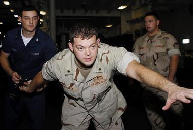 | Keywords: Combined Task Force 151 - 090115-N-5244H-054.jpg en 090115-N-5244H-054 GULF OF ADEN Jan 15 2009 Quartermaster 3rd Class Dan Apollo left from St Louis Mo handcuffs Coast Guard Petty Officer 3rd Class Chris Wimsatt from Stockton Mo during boarding team apprehension training in the well deck of the amphibious transport dock ship USS San Antonio LPD-17 as Coast Guard Petty Officer 3rd Class William Arocho from Miami looks on San Antonio is the flagship for Combined Task Force CTF 151 a multinational force conducting counter-piracy operations to detect and deter piracy in and around the Gulf of Aden Arabian Sea Indian Ocean and the Red Sea It was established to create a lawful maritime order and develop security in the maritime environment U S Navy photo by Mass Communication Specialist 1st Class Monique K Hilley/Released http //www navy mil/management/photodb/photos/090115-N-5244H-054 jpg Official U S Navy Photograph - http //www navy mil/view_image asp id 68072 090115-N-5244H-054 jpg Mass Communication Specialist 1st Class Monique K Hilley USN 2009-01-15 PD-USGov-Military-Navy Combined Task Force 151 Military in the Horn of Africa Piracy in Somalia Well decks People in handcuffs |