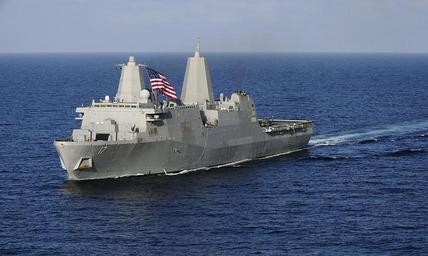 | Keywords: Combined Task Force 151 - 090112-N-7918H-245.jpg en 090112-N-7918H-245 GULF OF ADEN Jan 12 2009 The amphibious transport dock ship USS San Antonio LPD-17 transits the Gulf of Aden San Antonio is the command ship for Combined Task Force CTF 151 which conducts counter-piracy operations in and around the Gulf of Aden Arabian Sea Indian Ocean and the Red Sea and was established to create a lawful maritime order and develop security in the maritime environment U S Navy photo by Mass Communication Specialist 3rd Class John K Hamilton/Released http //www navy mil/management/photodb/photos/090112-N-7918H-245 jpg Official U S Navy Photograph Mass Communication Specialist 3rd Class John K Hamilton USN 2009-01-12 PD-USGov-Military-Navy Combined Task Force 151 Military in the Horn of Africa General views of USS San Antonio LPD-17 Ships facing left |