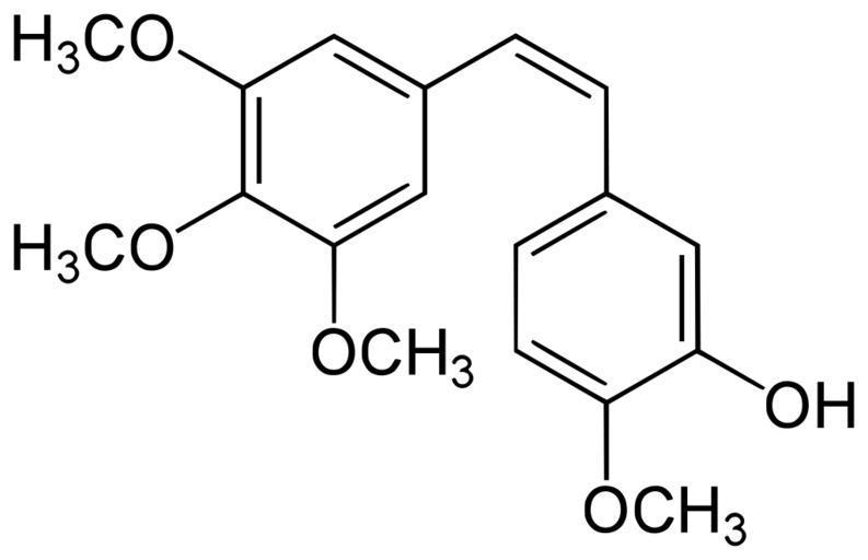 Keywords: Combretastatin A4.svg en Combretastatin A-4; Combretastatin A4; 3 4 5-Trimethoxy-3'-hydroxy-4'-methoxystilbene own Yikrazuul 2010-12-05 Stilbenoids Combretum caffrum
