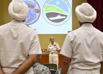 | Keywords: Commander, U.S. 3rd Fleet Vice Adm. Nora Tyson addresses international forces after a Task Force Energy and Environment (TFEE) training symposium held at the Joint Base Pearl Harbor-Hickam Conference Center on Ford Island.jpg en 160706-N-HM829-001 PEARL HARBOR July 6 2016 Commander U S 3rd Fleet Vice Adm Nora Tyson addresses international forces after a Task Force Energy and Environment TFEE training symposium held at the Joint Base Pearl Harbor-Hickam Conference Center on Ford Island Twenty-six nations more than 40 ships and submarines more than 200 aircraft and 25 000 personnel are participating in RIMPAC from June 30 to Aug 4 in and around the Hawaiian Islands and Southern California The world's largest international maritime exercise RIMPAC provides a unique training opportunity that helps participants foster and sustain the cooperative relationships that are critical to ensuring the safety of sea lanes and security on the world's oceans RIMPAC 2016 is the 25th exercise in the series that began in 1971 U S Navy photo by Mass Communication Specialist 2nd Class K Cecelia Engrums/Released 2016-04-08 http //www navy mil/management/photodb/photos/160706-N-HM829-001 JPG Mass Communication Specialist 2nd Class K Cecelia Engrums other versions PD-USGov RIMPAC 2016 |