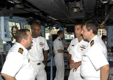 | Keywords: Commodore's breakfast 090714-N-DW912-016.jpg en U S and Brazilian Naval officers talk during Commodore's breakfast held in the pilot house aboard USS Oak Hill LSD 51 July 14 2009 Oak Hill is participating in a combined multinational exercise Southern Partnership Station SPS '09 SPS '09 is a combined naval and amphibious operation with Oak Hill and maritime forces from Argentina Brazil Chile Peru and Uruguay Oak Hill is also supporting U S Marine Corps Forces South Multinational Amphibious exercise Southern Exchange 2009 U S Navy Photo by Mass Communication 3rd Class Cory Rose/Released 2009-07-14 Petty Officer 3rd Class Cory Rose https //www dvidshub net/image/1276333 090714-N-DW912-016 2014-04-26 10 02 USS OAK HILL LSD 51 US PD-USGov-Military-Navy USS Oak Hill LSD-51 Images from DoD uploaded by Fæ |