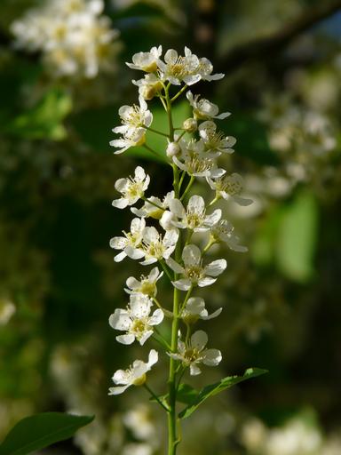 Keywords: common bird cherry black cherry tree flowers white spring bloom road leaves