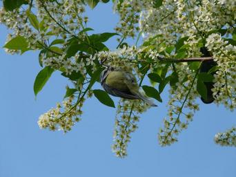 Keywords: common bird cherry black cherry tree flowers white spring bloom road bird tit food eat