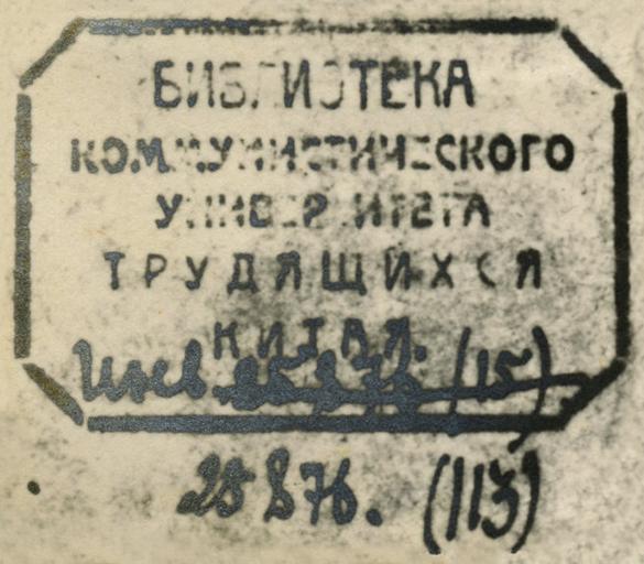 Keywords: hardware = epson expression 100 hardwareepsonexpression100 software = epson scan v2.20a an softwareepsonscanv220aan text writing sign The Communist University of the Toilers of China, known as the Sun-Yat Sen University of the Toilers of China until September 17th, 1928 was a Communist International school for Chinese revolutionaries from both the Kuomintang (KMT) and the Communist Party of China (CPC) that operated in the years 1925-1930 and was located in Moscow. It was named in honor of Sun-Yat Sen for his contributions to the Chinese Revolution of 1911 as well as his friendly stance toward the Soviet Union at the time. Students there were taught basic principles of Marxism and Leninism, as well as propaganda and mobilization techniques in theory and practice. Famous graduates included Deng Xiaoping, leader of the People’s Republic of China in the 1980s, and Chiang Ching-kuo, leader of the Republic of China (Taiwan) in the 1970s and son of Nationalist leader Chiang Kai-Shek, among many others who would be influential in politics in China. This book stamp is from a book looted by the Nazis and sorted by Colonel Seymour Pomrenze, one of “the Monuments Men,” at the Offenbach Archival Depot. There are two scrapbooks of archival markings from the books sorted at the Offenbach Depot in the Seymour Pomrenze Collection held by the American Jewish Historical Society (Call number P-933) There is a finding aid for the collection here The digitized scrapbooks are available here and here. For more information on this project check the Center’s blog: 16thstreet.tumblr.com/tagged/Offenbach-Depot Dr. Mitch Fraas, Acting Director of the Digital Humanities Forum at the University of Pennsylvania Libraries' Special Collections Center is working on a similar project for the German book stamps based on NARA microfilm of the volumes the American Jewish Historical Society currently holds. See viewshare.org/views/mfraas/offenbach-bookplates/ The Center for Jewish History would like to acknowledge the following: The American Jewish Historical Society, who graciously allowed the use of their archival materials and digital content; Mitch Fraas, Acting Director of the Digital Humanities Forum at the University of Pennsylvania Libraries' Special Collections Center, for his data and technical assistance in this project; David Rosenberg, Senior Manager for Communications, and Melanie Meyers, Senior Reference Services Librarian for Special Collections, for managing and creating the digital map; as well as Reference Services Librarian Zachary Loeb and Reference Services Assistant Ilya Slavutskiy for their work on translating and mapping. For copyright information, click here The Communist University of the Toilers of China, known as the Sun-Yat Sen University of the Toilers of China until September 17th, 1928 was a Communist International school for Chinese revolutionaries from both the Kuomintang (KMT) and the Communist Party of China (CPC) that operated in the years 1925-1930 and was located in Moscow. It was named in honor of Sun-Yat Sen for his contributions to the Chinese Revolution of 1911 as well as his friendly stance toward the Soviet Union at the time. Students there were taught basic principles of Marxism and Leninism, as well as propaganda and mobilization techniques in theory and practice. Famous graduates included Deng Xiaoping, leader of the People’s Republic of China in the 1980s, and Chiang Ching-kuo, leader of the Republic of China (Taiwan) in the 1970s and son of Nationalist leader Chiang Kai-Shek, among many others who would be influential in politics in China. This book stamp is from a book looted by the Nazis and sorted by Colonel Seymour Pomrenze, one of “the Monuments Men,” at the Offenbach Archival Depot. There are two scrapbooks of archival markings from the books sorted at the Offenbach Depot in the Seymour Pomrenze Collection held by the American Jewish Historical Society (Call number P-933) There is a finding aid for the collection here The digitized scrapbooks are available here and here. For more information on this project check the Center’s blog: 16thstreet.tumblr.com/tagged/Offenbach-Depot Dr. Mitch Fraas, Acting Director of the Digital Humanities Forum at the University of Pennsylvania Libraries' Special Collections Center is working on a similar project for the German book stamps based on NARA microfilm of the volumes the American Jewish Historical Society currently holds. See viewshare.org/views/mfraas/offenbach-bookplates/ The Center for Jewish History would like to acknowledge the following: The American Jewish Historical Society, who graciously allowed the use of their archival materials and digital content; Mitch Fraas, Acting Director of the Digital Humanities Forum at the University of Pennsylvania Libraries' Special Collections Center, for his data and technical assistance in this project; David Rosenberg, Senior Manager for Communications, and Melanie Meyers, Senior Reference Services Librarian for Special Collections, for managing and creating the digital map; as well as Reference Services Librarian Zachary Loeb and Reference Services Assistant Ilya Slavutskiy for their work on translating and mapping. For copyright information, click here |