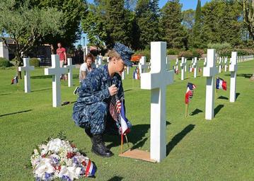 | Keywords: Community service project 140814-N-VY489-050.jpg en Yeoman 2nd Class Kaitlyn Nolan assigned to the U S 6th Fleet flagship USS Mount Whitney LCC 20 places an American flag on the grave of a fallen World War II soldier during a community service project at the Rhone American Cemetery in Draguignan France Mount Whitney homeported in Gaeta Italy is in Theoule-sur-Mer France to participate in the commemoration of the 70th anniversary of Operation Dragoon which led to the liberation of southern France by Allied forces during World War II U S Navy Photo by Mass Communication Specialist 2nd Class Mike Wright/Released 2014-08-14 Petty Officer 2nd Class michael wright https //www dvidshub net/image/1509228 140814-N-VY489-050 2014-08-18 17 50 DRAGUIGNAN FR PD-USGov-Military-Navy USS Mount Whitney LCC-20 Images from DoD uploaded by Fæ |