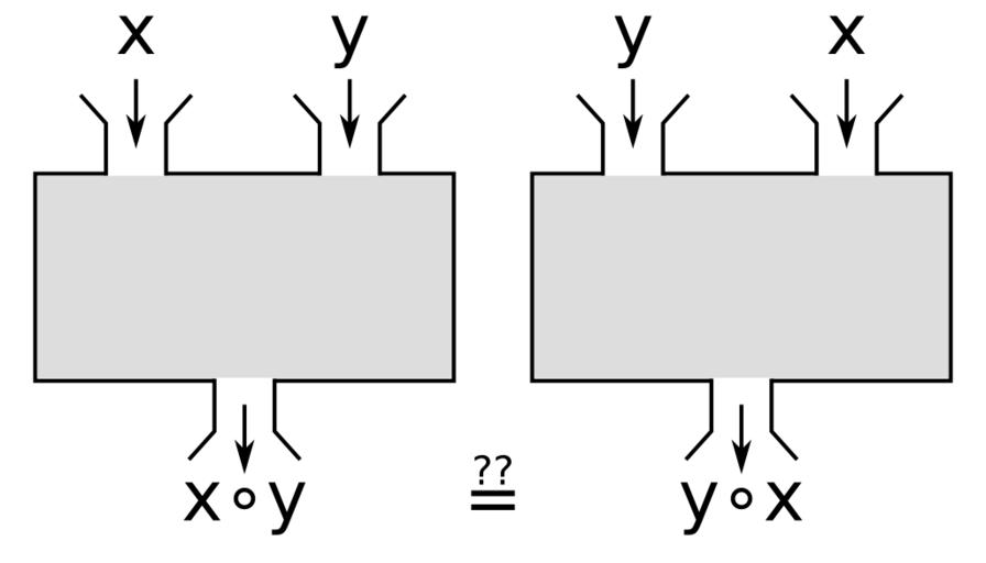 | Keywords: Commutativity of binary operations.svg en Visualizes the concept of commutativity for binary operations using a black box model de Dieses Bild verdeutlicht das Konzept der Kommutativität binärer Operatoren anhand des Black Box-Modells 2016-09-21 own Talonnn other versions <gallery widths 300 heights 150> File Commutativity of binary operations svg File Commutativity of binary operations without question mark svg </gallery> cc-zero Commutativity Algebraic structures Elementary mathematics |