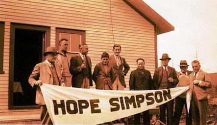| Keywords: Company Publicity brochure holding the banner 1934 Arthur Eric Williams fifth from l.jpg en People photographs in relation to The Public Enquiry into the Affairs of the Labrador Development Company Ltd held in St John ™s Newfoundland 1945 regarding logging operations in Port Hope Simpson Newfoundland and Labrador Canada circ 1934-1946 pertinent to the two unsolved deaths 3 February 1940 of Arthur Eric Williams eldest son of the Owner John Osborn Williams and Erica D'Anitoff Williams Eric's infant daughter Further information Tombstone The British Government ™s Cover-Up Port Hope Simpson Newfoundland and Labrador Canada; Legacy Port Hope Simpson Town Newfoundland and Labrador Canada; Port Hope Simpson Mysteries Newfoundland and Labrador Canada Oral History Evidence and Interpretation; Port Hope Simpson Off the Beaten Path; Port Hope Simpson Historic Logging Town in Canada; The Port Hope Simpson Challenge; The Port Hope Simpson Diaries ™ Vols 1 and 2; Port Hope Simpson Clues; Rooted Forever in History by Llewelyn Pritchard MA 2015-08-04 Public Record Office Public Record Office other versions cc-zero Uploaded with UploadWizard Port Hope Simpson Newfoundland and Labrador John Hope Simpson John Osborn Williams |