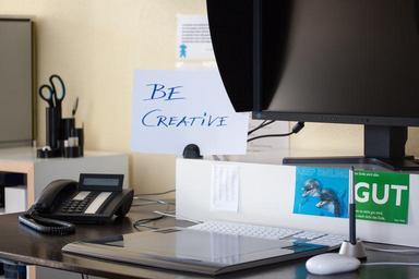 Keywords: company workplace office phone graphics tablet keyboard mouse digital pen screen paper holder mirroring creative graphic design home office computer