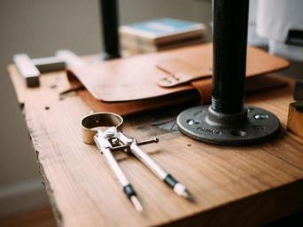 Keywords: compass drafting tools design notebook wood table