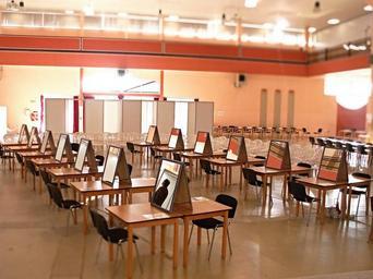Keywords: competition of hairdressers mirrors chair desk hall before the competition