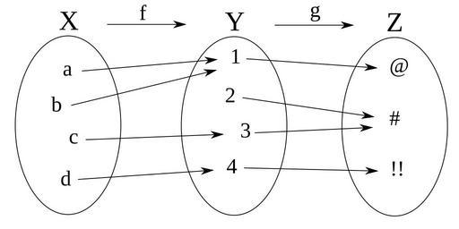 Keywords: Compfun.svg The figure of a composite function Own 2007-10-31 Tlep composition mappings Arrow diagrams of mappings not injective and not surjective