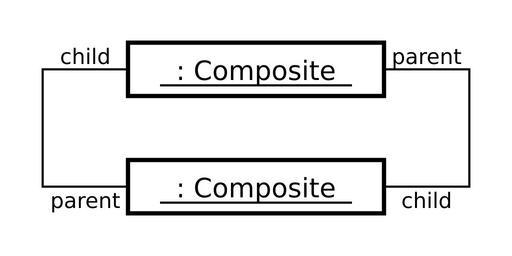 | Keywords: Composite UML object diagram with loop reference.svg http //validator w3 org/check uri http 3A 2F 2Fupload wikimedia org 2Fwikipedia 2Fcommons 2F2 2F2f 2FComposite_UML_object_diagram_with_loop_reference svg This source is valid SVG 1 1 UML object diagram which represents a result of bad implementation of Composite software design pattern It includes a loop reference 循環参照を含んでいるComposite パターンの適用例 My own work written with text editor 2006-12-29T04 00+09 00 Trashtoy Composite pattern | ||||