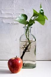 Keywords: composition apple bottle glass light still life plant pact