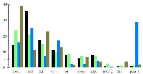 | Keywords: Compoziţia rasială a studenţilor dela Universitatea din Cluj (Făcăoaru, Contribuţie la studiul compoziţiei rasiale a studenţilor minoritari din România).JPG en Graph based on purported racial data as presented by controversial Romanian sociologist Iordache Făcăoaru Introduced by Făcăoaru as Compoziţia rasială a studenţilor dela Universitatea din Cluj The Racial Makeup of Cluj University Students within his 1938 essay Contribuţie la studiul compoziţiei rasiale a studenţilor minoritari din România A Contribution to the Research of Racial Makeup among Minority Students in Romania The cited work is based on anthropometric intuitive data corroborated with student photographs as filed by the military recruitment office in Cluj Based on such measurements Făcăoaru divides his subjects into pseudoscientific racial categories while keeping in mind their officially recorded ethnicity For the scholarly critique of Făcăoaru's method and politics including Contribuţie la studiul compoziţiei see for instance ro icon Lucian T Butaru http //www euro ubbcluj ro/structura/pers/pdf/lucian_butaru_rasism pdf Rasism românesc Componenta rasială a discursului antisemit din România până la Al Doilea Război Mondial Editura Fundaţiei pentru Studii Europene Cluj-Napoca 2010 ISBN 978-606-526-051-1<br> 000000 Romanians 00FA9A Hungarians 1E90FF Jews BDB76B Germans <br> nord Nordic; med Mediterranean; x Not determined; din Dinaric; or Oriental; e eur East-Europaeid; alp Alpine; mong Mongoloid; dal Dalic; p asia Pre-Asiatic own <br>Based on Contribuţie la studiul compoziţiei rasiale a studenţilor minoritari din România in http //dspace bcucluj ro/bitstream/123456789/19284/1/BCUCLUJ_FP_279286_1938_009_001_002 pdf Buletin Eugenic şi Biopolitic 1-2/1938 Dahn 2012-07-23 Racism in Romania Eugenics Scientific racism 1938 works 1938 in Romania 1938 in education Population diagrams Demographics of Romania Babeș-Bolyai University History of Cluj-Napoca Cc-zero PD-RO-exempt |