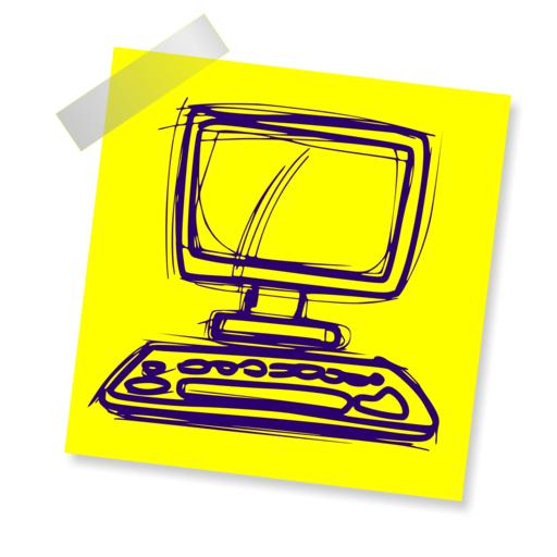 Keywords: computer comp internet keyboard desk sign note yellow sticker post note office
