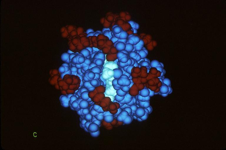 Keywords: Computer cytochrome C.jpg This image depicts cytochrome c which is a small protein used in the electron transfer chain Computer graphics are made by utilizing data fed into a computer This data may consist of chemical weights and measures and the structure of specific elements A three-dimensional image can be made so one can visualize on otherwise minute structure Topics/Categories Historical Graphics Type Color Photo Source National Cancer Institute Dr Richard Feldmann Photographer 2133 1982-03 Reuse Restrictions None - This image is in the public domain and can be freely reused Please credit the source and/or author listed above Dr Richard Feldmann Photographer PD-USGov-HHS-NIH Media from National Cancer Institute Visuals Online Images uploaded by Fæ |