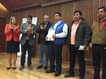 | Keywords: Temuco, viernes 23 de septiembre de 2016.- Una bonificación cercana a los $400 millones, que permitirá iniciar la ansiada reparación del canal matriz de la Comunidad de Aguas del Canal Itinento fue entregada hoy por el Ministro de Agricultura, Carlos Furche, y la Secretaria Ejecutiva de la Comisión Nacional de Riego (CNR), Loreto Mery, en una ceremonia realizada en Temuco. Temuco, viernes 23 de septiembre de 2016.- Una bonificación cercana a los $400 millones, que permitirá iniciar la ansiada reparación del canal matriz de la Comunidad de Aguas del Canal Itinento fue entregada hoy por el Ministro de Agricultura, Carlos Furche, y la Secretaria Ejecutiva de la Comisión Nacional de Riego (CNR), Loreto Mery, en una ceremonia realizada en Temuco. |