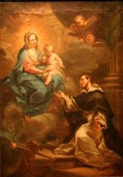 | Keywords: Conca-Rosaire.jpg ~ 1740 1750 Oil on canvas cm 52 35 Institution Musée des Beaux-Arts Nimes object history Legs Tur en 1948 credit line accession number IP 1391 own Robert Valette PD-old-100 Photo Uploaded with UploadWizard Musée des Beaux-Arts de Nîmes Sebastiano Conca Saint Dominic receives the Rosary |