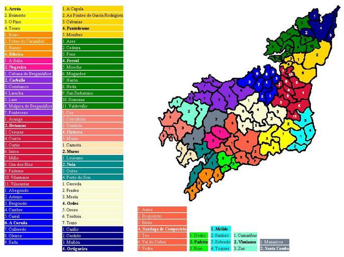 Keywords: Concellos de Coruña.jpg Concellos da Coruña con cores por comarca ' FF1493' ' FFFFFF' A Barcala - ' 0000FF' ' FFFFFF' A Coruña - ' FFFF00' ' FFFFFF' Arzúa - ' 8A2BE2' ' FFFFFF' Bergantiños - ' DC143C' ' FFFFFF' Betanzos - ' 008000' ' FFFFFF' Ferrol - ' FA8072' ' FFFFFF' Fisterra - ' FFE4B5' ' FFFFFF' Muros - ' 008B8B' ' FFFFFF' Noia - ' FF8C00' ' FFFFFF' O Barbanza - ' FFD700' ' FFFFFF' O Eume - ' 00FF00' ' FFFFFF' O Sar - ' FAFAD2' ' FFFFFF' Ordes - ' 00008B' ' FFFFFF' Ortegal - ' FF6347' ' FFFFFF' Santiago - ' 00FFFF' ' FFFFFF' Terra de Melide - ' 7FFFD4' ' FFFFFF' Terra de Soneira - ' 00FF00' ' FFFFFF' Xallas Municipalities of la Corunna Spain Own 2007-11-16 Freixodachamorra Maps of the province of A Coruña Comarcas of A Coruña |