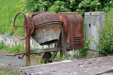Keywords: concrete mixer construction machinery free-fall mixer rusted stainless rusty technology unusable cement old concrete construction work