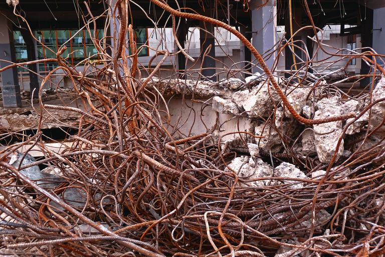 Keywords: concrete wires demolition site collected metal structure industrial destruction