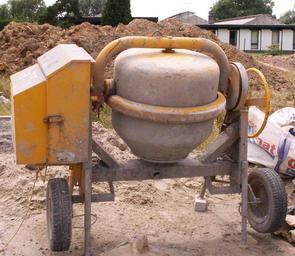 Keywords: ConcreteMixer4.JPG en A picture of a older model concrete mixer This mixer is electrically powered and thus does not pollute the surrounding atmosphere Note the yellow electrical wire Own KVDP 2008-06-20 Cement mixers