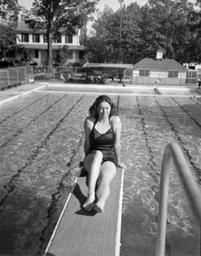 | Keywords: tarboro (n.c) tarboronc swimming pools swimmingpools carolyn perrest carolynperrest blackandwhite monochrome outdoor road black and white Carolyn Perrest [?] Tarboro, NC, Champ Swimmer, thought to be at a local Tarboro swimming pool, May 1939. Taken by Baker, NC Conservation and Development Department, Travel and Tourism photo files, State Archives of North Carolina, Raleigh, NC. We need your help! Is this swimming pool the famous Tarboro "Cool Pool"? From the NCPedia ncpedia.org/cool-pool: On 9 July 1933 the Tarboro Town Council voted to ask Frick and Company of Waynesboro, Pa., to design and install a refrigerating unit for its new municipal swimming pool. After operating for only three months, the olympic-design pool, containing 300,000 gallons of water and with a constant flow of 400 gallons per minute, had become uncomfortably warm from the summer's record heat and the activity of swimmers. By mid-August Frick had installed the refrigerating device at a cost of $2,592, making the Tarboro pool what is believed to have been the first and perhaps only refrigerated outdoor pool in the country. Tarboro's "cool pool" drew crowds of swimmers and swimming meets throughout the 1930s. Carolyn Perrest [?] Tarboro, NC, Champ Swimmer, thought to be at a local Tarboro swimming pool, May 1939. Taken by Baker, NC Conservation and Development Department, Travel and Tourism photo files, State Archives of North Carolina, Raleigh, NC. We need your help! Is this swimming pool the famous Tarboro "Cool Pool"? From the NCPedia ncpedia.org/cool-pool: On 9 July 1933 the Tarboro Town Council voted to ask Frick and Company of Waynesboro, Pa., to design and install a refrigerating unit for its new municipal swimming pool. After operating for only three months, the olympic-design pool, containing 300,000 gallons of water and with a constant flow of 400 gallons per minute, had become uncomfortably warm from the summer's record heat and the activity of swimmers. By mid-August Frick had installed the refrigerating device at a cost of $2,592, making the Tarboro pool what is believed to have been the first and perhaps only refrigerated outdoor pool in the country. Tarboro's "cool pool" drew crowds of swimmers and swimming meets throughout the 1930s. |