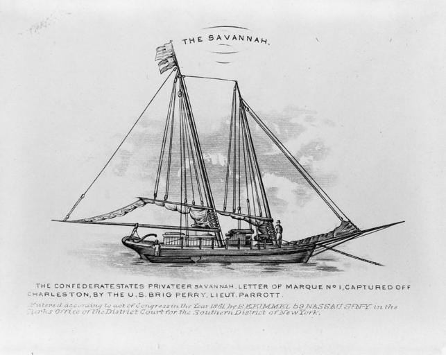 | Keywords: Confederate States privateer Savannah.jpg The Confederate States privateer Savannah letter of marque no 1 captured off Charleston by the U S Brig Perry Lieut Parrott 1861 http //www loc gov/pictures/item/2006686135/ E K Kimmel cph 3c36802 PD-old-100-1923 Ships of the United States in art Navy of the Confederate States of America |