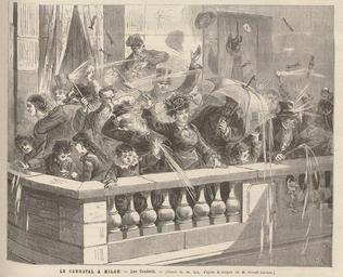 | Keywords: Confetti à Milan.jpg fr Bataille de confetti en plâtre au Carnaval de Milan 1884 Le Monde Illustré Dessin de Lix d'après un croquis de Oswald Levens 1er mars 1884 Domaine public Confetti Carnivals of Italy Milan in art 1884 in Milan Le Monde Illustré History of Carnival PD-old |